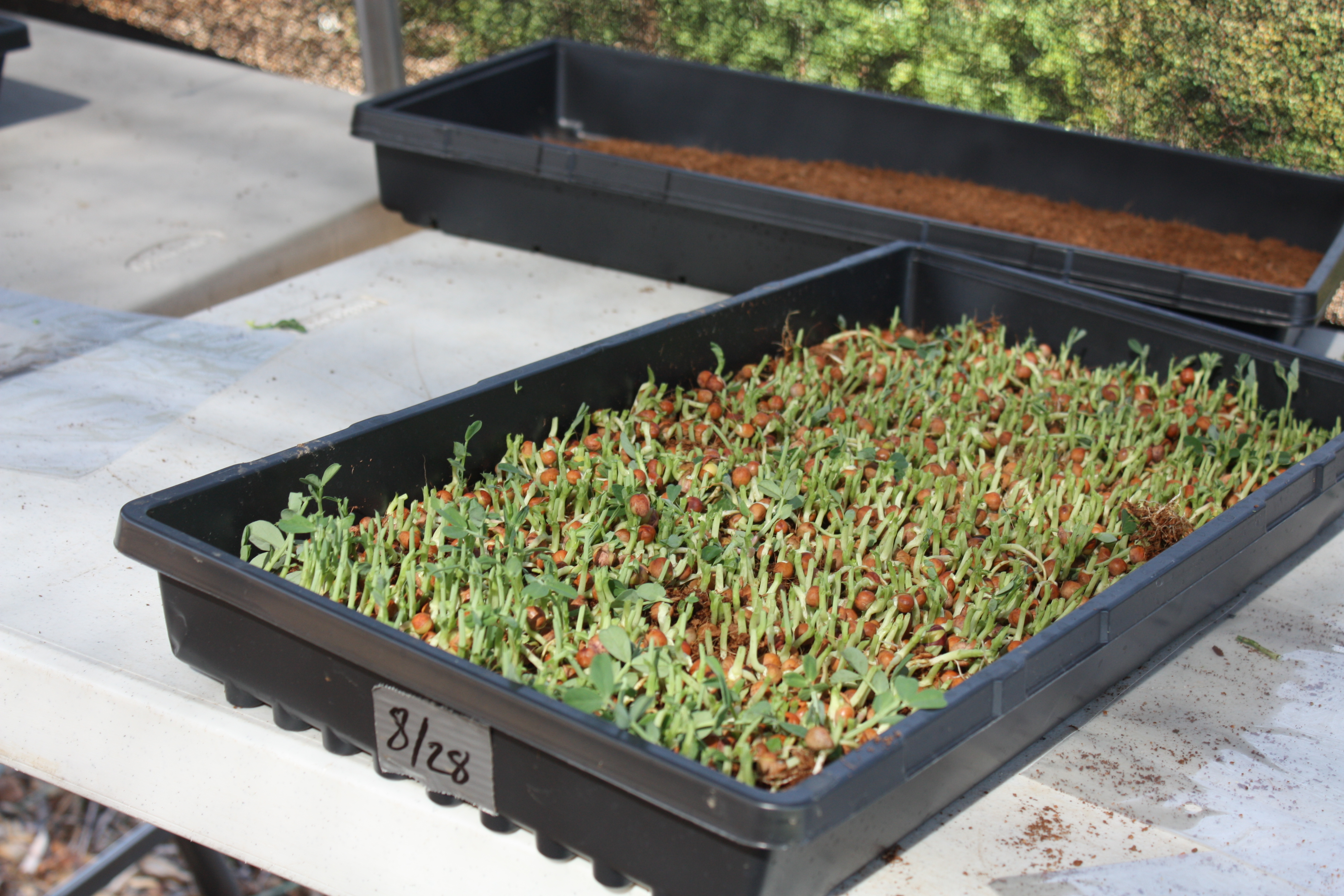 In the first week of October we’re going to start selling select produce to restaurants. This includes pea and sunflower shoots, which we’ve been growing and harvesting for a few weeks now. The shoots take approximately 1 week to grow from seed to uber-healthy and delicious sprouts. Perfect for salads, sandwiches or as a garnish!
