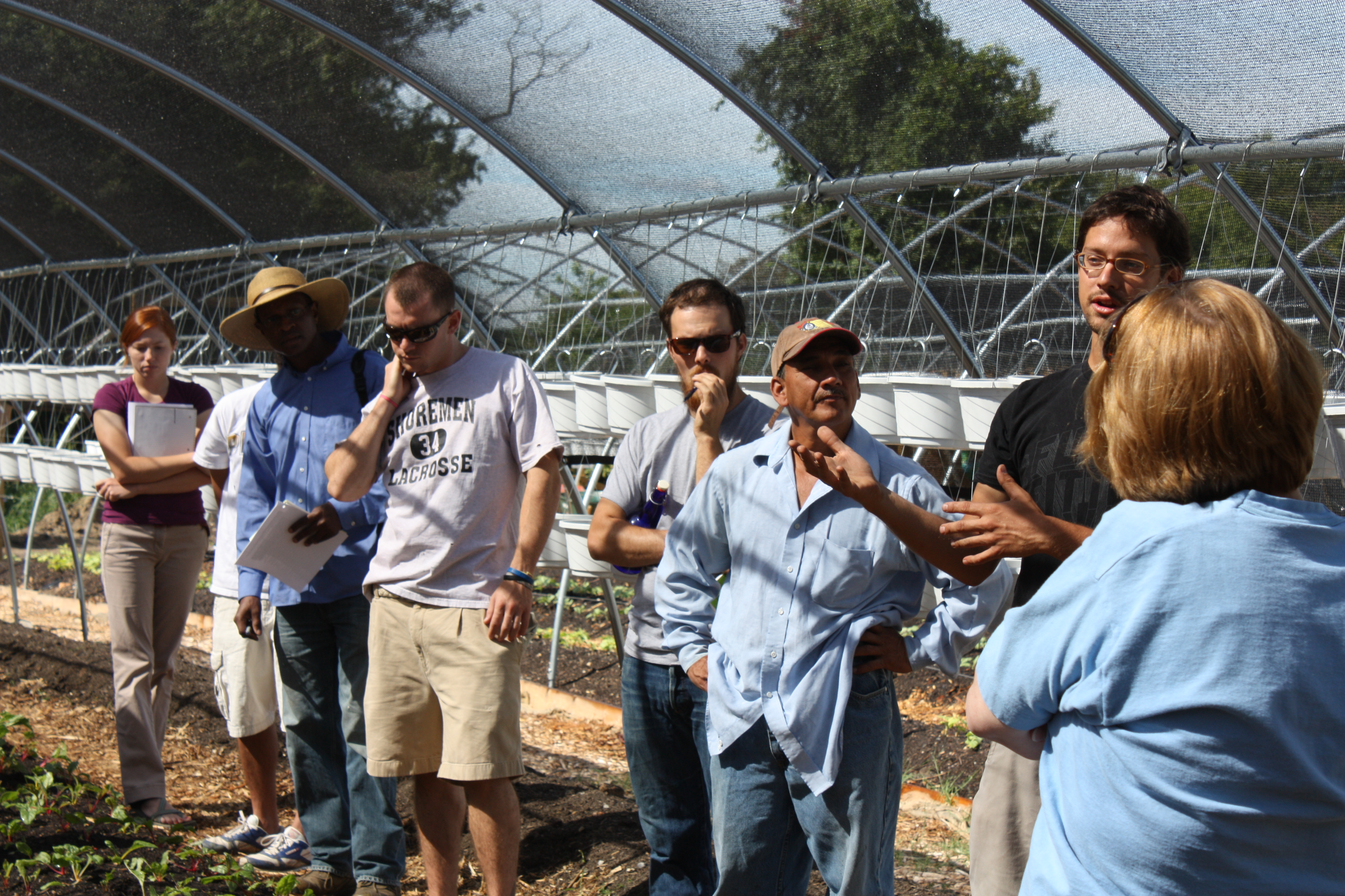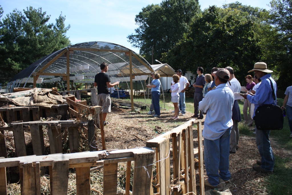 Last Tuesday we held our first Urban Commercial Agriculture class, offered by Prince George’s Community College, part of the college’s new “Green” Training program. This 6-week hands-on course is held twice a week, Tuesdays and Saturdays, and is aimed at educating budding “agripreneurs” in urban farm design, composting, growing season extension methods, farm construction, and the marketing of agricultural products. A diverse group of approximately 20 people is enrolled, encompassing different cultures, ages and backgrounds. There are a number of people from Baltimore, and even two traveling all the way from Pennsylvania to take the course. Their serious and devoted attitude is inspiring. The New Urban Farmer trainees are also taking the course as part of their 9-month training program.