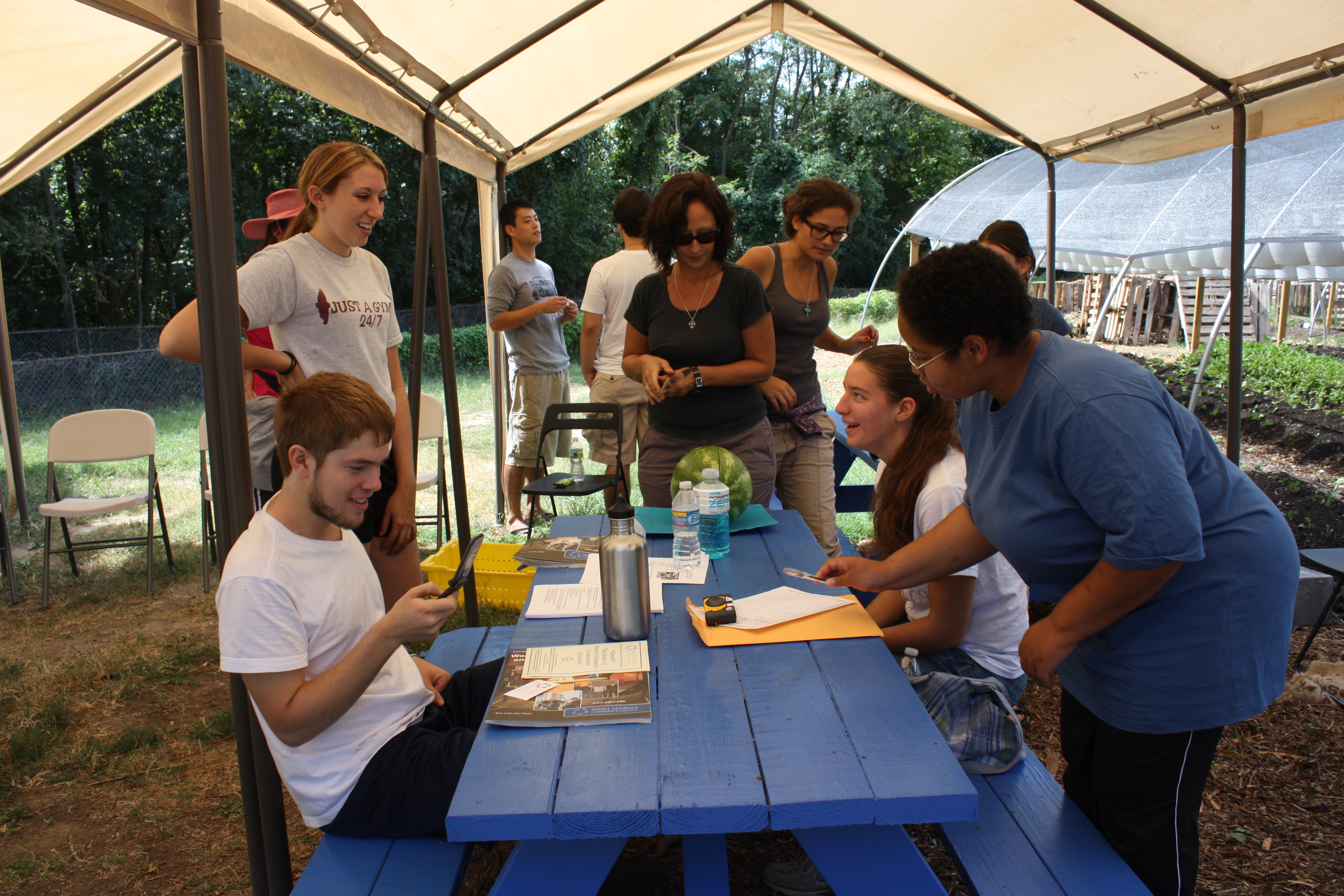 The volunteers taking a watermelon break.
