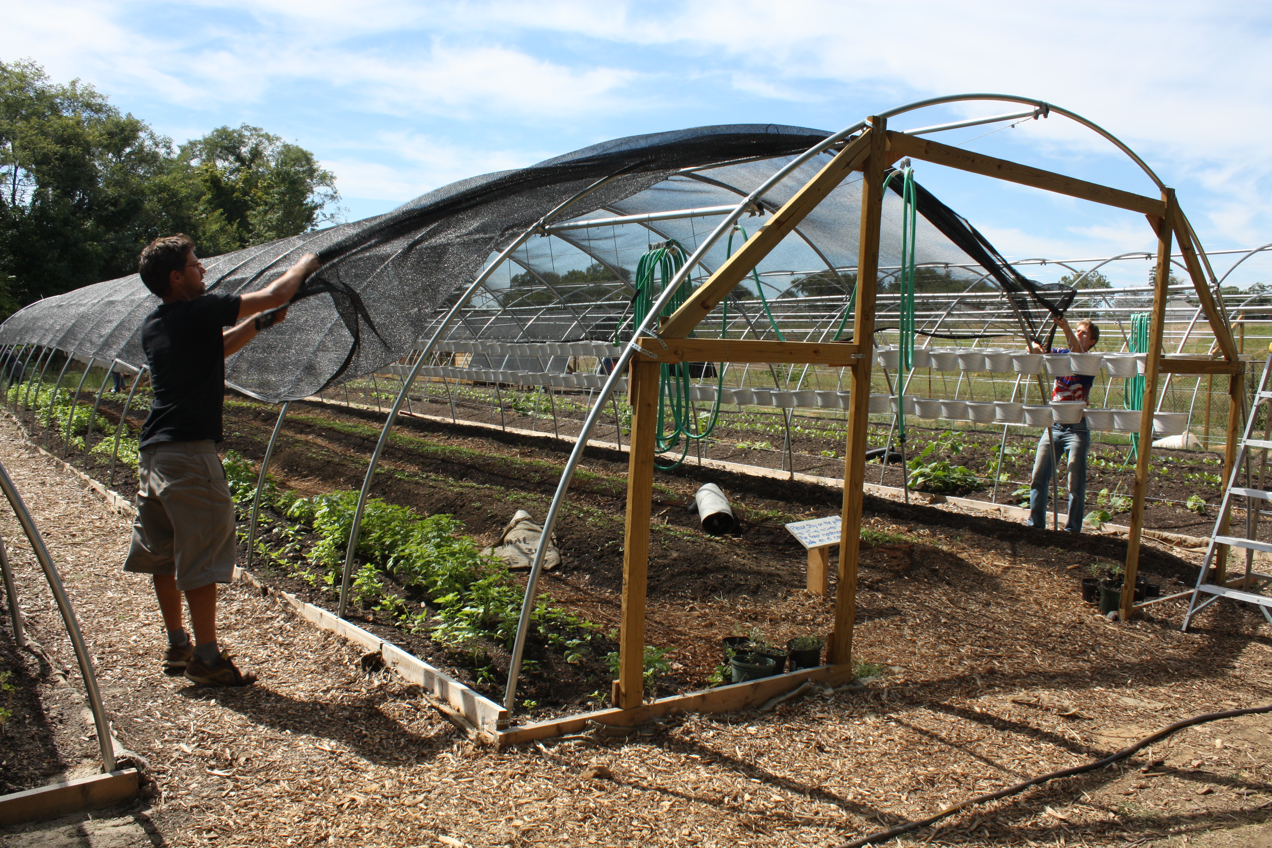 It’s that time of year! Vinnie and Mike unveiling hoophouse number 2, which had a 40% shade cloth on it for the past two months. With the autumn sun, these plants no longer require as much shade.